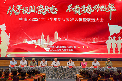 9月15日,正值國防教育月,柳南區2024年秋季新兵入伍歡送大會在柳工全球研發中心報告廳順利舉行。柳南區委書記、政府區長肖源,股份公司黨委副書記、紀委書記、工會主席李于寧出席活動。