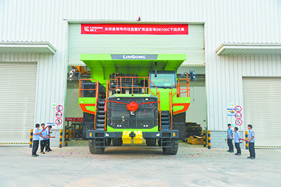 8月15日,柳工全球首創電傳動直驅礦用剛性自卸車DE100C(下稱柳工DE100C剛性自卸車)在東部研發制造基地成功下線。