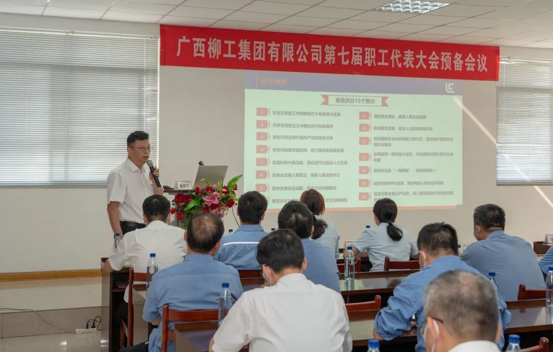 廣西柳工集團有限公司黨委副書記、紀委書記、工會主席賴頌平在第七屆職工代表大會預備會議上向廣大職工代表宣講黨的二十大精神。