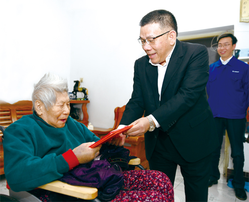公司領(lǐng)導率隊 慰問建廠元老 發(fā)布時間:2018/12/17 點擊數(shù): 次 【字體:小 大】 11月23日,公司黨委書記、董事長曾光安等高層領(lǐng)導攜公司80后領(lǐng)導干部開展慰問建廠元老活動,向建廠元老學習艱苦奮斗的精神,傳承老一輩柳工人的優(yōu)秀品質(zhì)。 曾光安為元老送上慰問紀念品