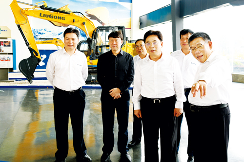 自治區(qū)高院院長黃海龍蒞臨公司調(diào)研 發(fā)布時(shí)間:2018/11/15 點(diǎn)擊數(shù): 次 【字體:小 大】 11月6日上午,廣西壯族自治區(qū)高級(jí)人民法院院長黃海龍蒞臨公司調(diào)研。公司黨委書記、董事長曾光安熱情地接待了黃海龍一行,向其介紹了柳工發(fā)展歷史、全球布局和業(yè)務(wù)發(fā)展等情況,并陪同參觀了柳工機(jī)械展廳。參觀結(jié)束后,雙方就柳工訴訟案件辦理及法院工作開展情況進(jìn)行了交流座談。 曾光安(右一)為黃海龍(右二)一行介紹柳工產(chǎn)品