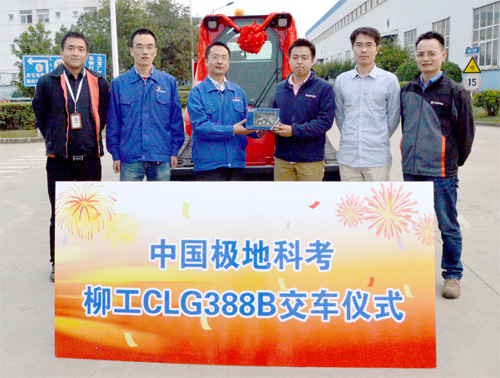 早在今年年初,江蘇柳工獲悉南極科考隊需要采購一批工程機械設備,結合南極環境、以及科考隊應用在直升機里作業等需求,向科考隊推薦了“原地轉向,機動靈活;快換裝置,一機多用”的CLG388B。經過江蘇柳工的積極協調,CLG388B于9月中標。