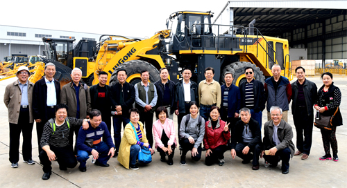 老領導們興致勃勃地在柳工大型裝載機前合影留念