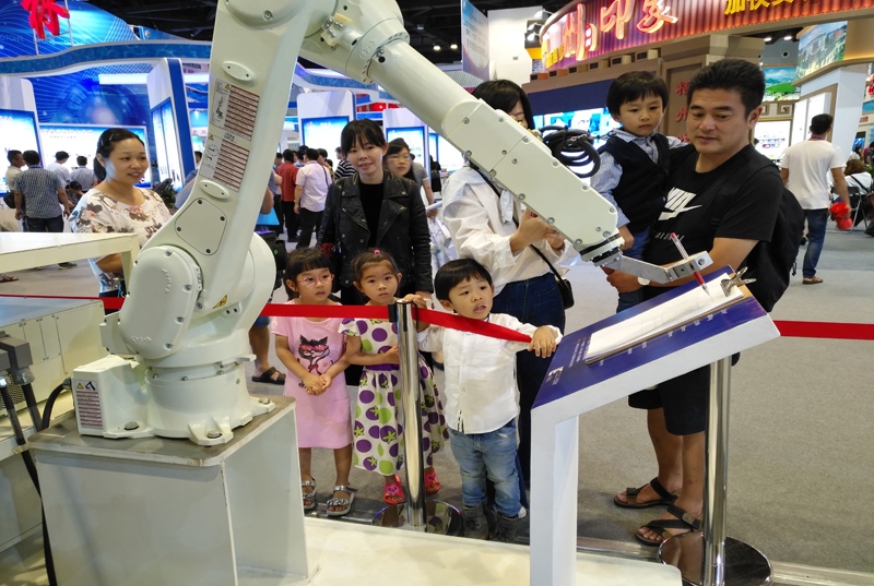 柳工作為自治區(qū)明星企業(yè)應(yīng)邀參加了此次會展,參加會展的主要有四個模塊:以CLG9045E為代表的小型機械產(chǎn)品展示、新技術(shù)成果展示、智能管家應(yīng)用展示和柳工機器人展示。柳工機器人第一次參加自治區(qū)科技活動周會展,吸引了大量的參觀者。他們有的是意向客戶,有的是同行企業(yè),還有很多普通市民。參觀者都對柳工機器人產(chǎn)生了濃厚的興趣,紛紛向柳工的工作人員了解機器人的工作原理、應(yīng)用范圍等。