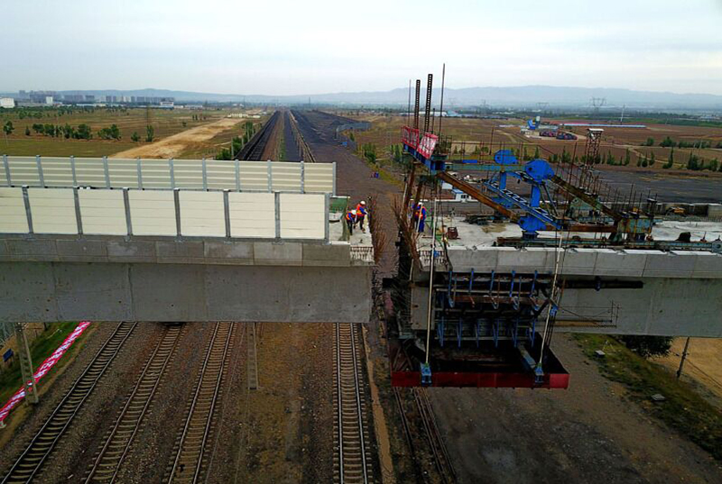 6月5日6時30分,張家口至大同鐵路客運專線(簡稱大張高鐵)首座大橋——解家莊特大橋重達8700噸的墩梁轉體96度,與兩墩49米的連續梁在湖大鐵路上空親切“握手”。歐維姆公司的工作人員參與施工并見證了這一歷史時刻(如下圖)。